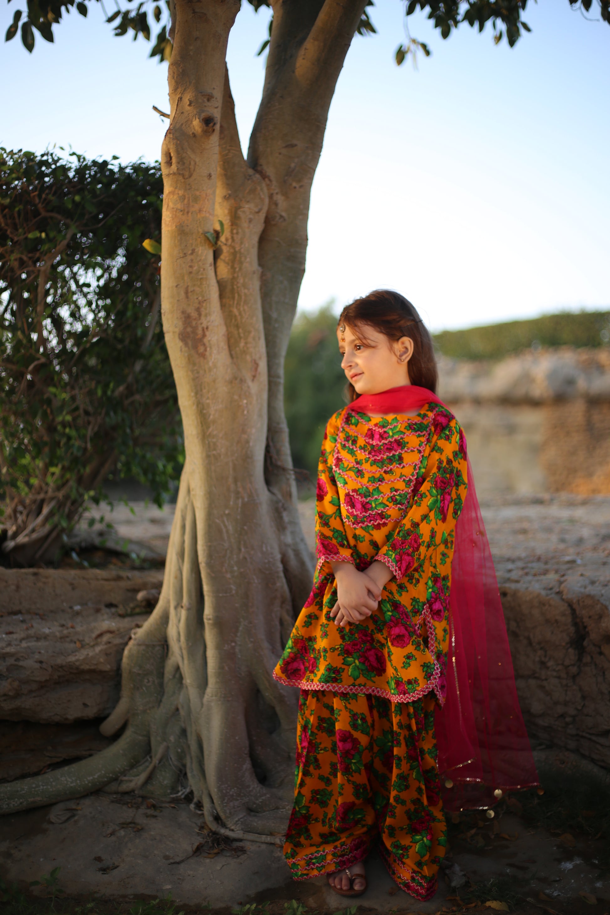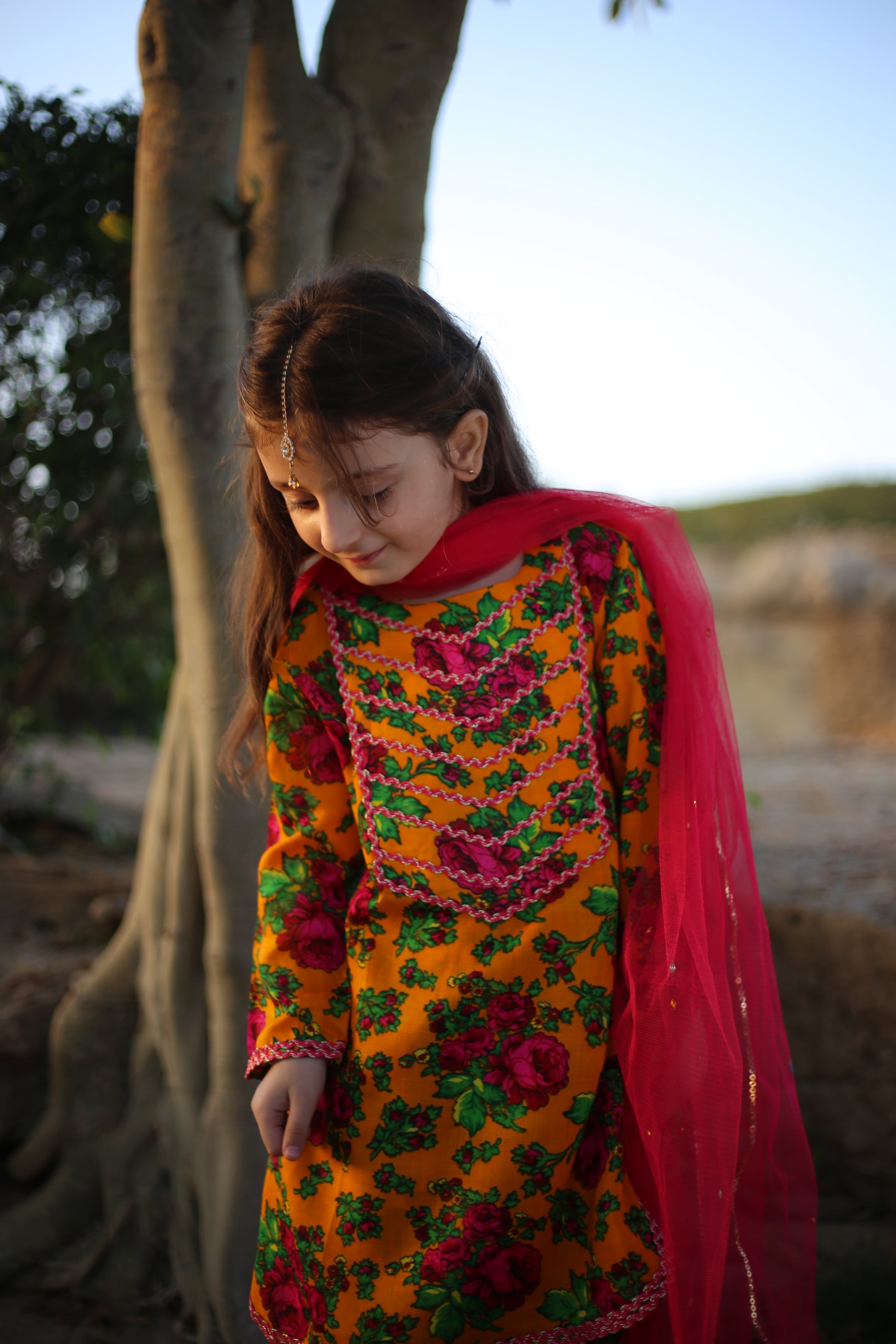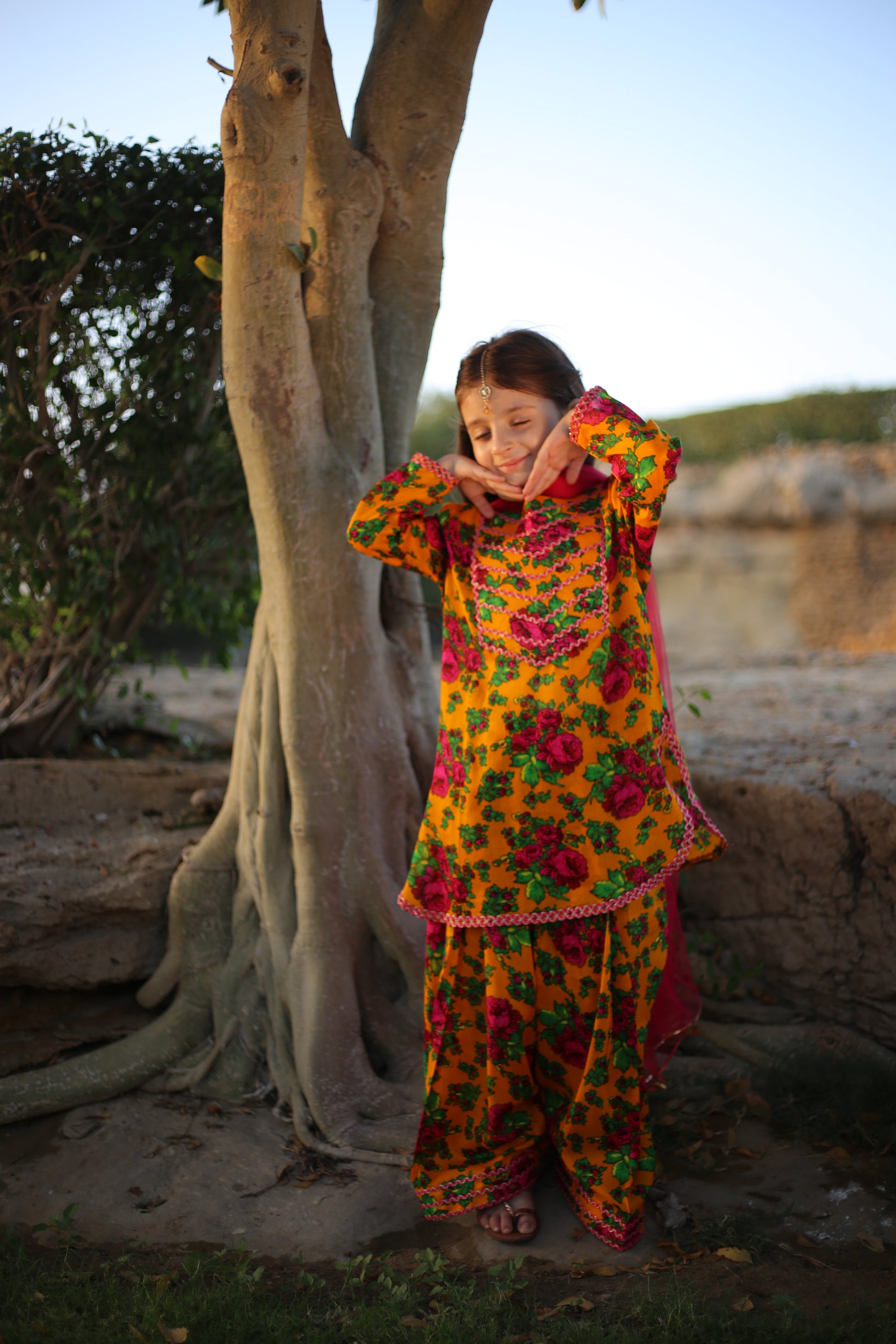 Dress your little one in style with our Sunheri Mustard Floral Farshi Shalwar Suit! Perfect for festive occasions, this 3-piece suit features a vibrant mustard color and beautiful floral design. Give your child the gift of comfort and fashion with this unique and playful outfit. (Limited quantities available!)